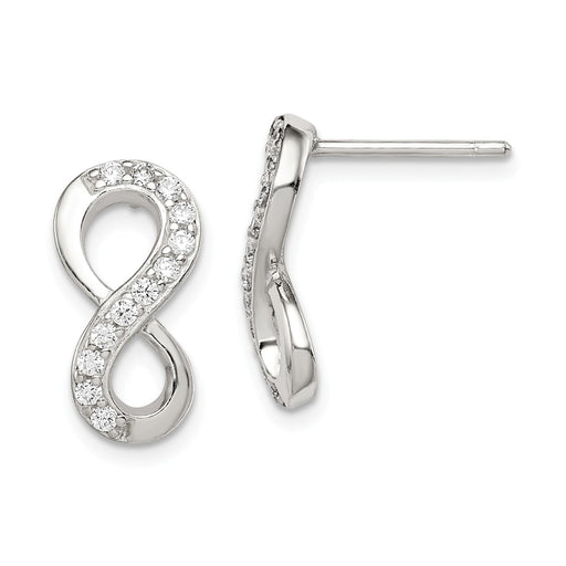 925 Sterling Silver Cubic Zirconia ( CZ ) Infinity Post Earrings, 16mm x 7mm