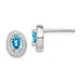 925 Sterling Silver Rhodium-plated with Blue & White Cubic Zirconia ( CZ ) Oval Stud Earrings, 9mm x 8mm