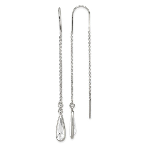 Stella Silver 925 Sterling Silver Clear Glass Stone Teardrop Threader Earrings, 81mm x 6mm