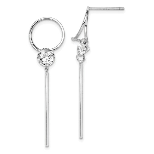 925 Sterling Silver Rhodium-plated Cubic Zirconia ( CZ ) Circle & Bar Post Dangle Earrings,