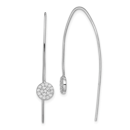 925 Sterling Silver Rhodium-plated Pave Cubic Zirconia ( CZ ) Circle Threader Earrings,