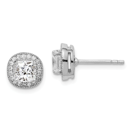 925 Sterling Silver Rhodium-plated 7mm Cubic Zirconia ( CZ ) Post Earrings, 10.54mm x 10.54mm
