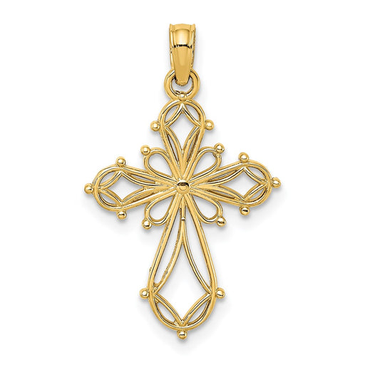 OGQG$287.22Million Charms 14K Yellow Gold Themed Polished & Cut-Out Beaded Cross - Jewelry, Pendants & Charms, Themed Charms, Religious, Crosses, Fanc...