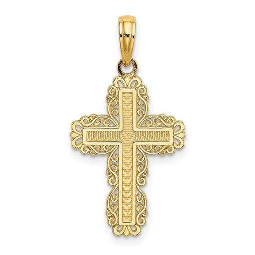 OGQG$262.30Million Charms 14K Yellow Gold Themed Polished Lace Trim Relgious Cross Charm - Jewelry, Pendants & Charms, Themed Charms, Religious, Crosses, ...