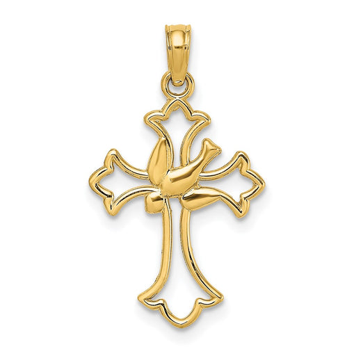 OGQG$170.48Million Charms 14K Yellow Gold Themed Cut-Out Dove Center Relgious Cross Charm - Jewelry, Pendants & Charms, Themed Charms, Religious, Crosses,...