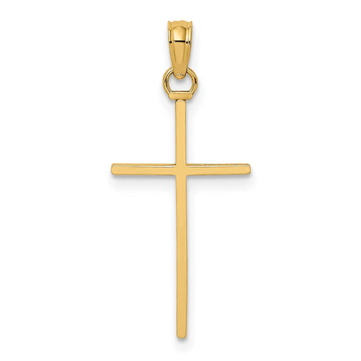 Million Charms 14K Yellow Gold Themed 2-D & Polished Block Style Stick Relgious Cross Charm