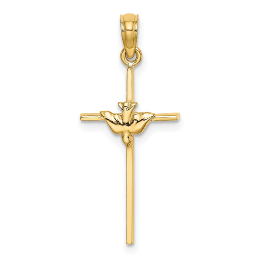 Million Charms 14K Yellow Gold Themed Cut-Out Relgious Cross With Dove Charm