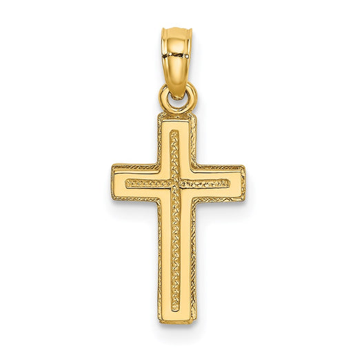 Million Charms 14K Yellow Gold Themed 2-D Polished & Textured Relgious Cross Charm