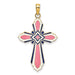 Million Charms 14K Yellow Gold Themed 3-D With Pink & White Enamel Relgious Cross Charm