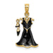 Million Charms 14K Yellow Gold Themed 3-D Moveable Enamel Black Dress With Shoe Charm