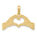 Million Charms 14K Yellow Gold Themed Hands Forming A Heart Charm - Jewelry, Pendants & Charms, Themed Charms, Hearts / LoveJewelry, Pendants & Charms, Themed Charms, Celtic / Claddagh - Purity: 14K|Finish: Polished|Length of Item: 11 mm|Charm/Element Length: 11 mm|Charm/Element Thickness: 0.9 mm|Charm/Element Width: 24.4 mm| Width of Item: 24.4 mm|Jewelry Type: Pendants & Charms|Bail Width: 5 mm| Color: Yellow|Bail Length: 7 mm - Made in: United States