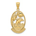 Million Charms 14K Yellow Gold Themed Stone Harbor With Dolphin & Sunset In Frame - Jewelry, Pendants & Charms, Themed Charms, Travel & Transportation - Purity: 14K|Finish: Polished|Length of Item: 30.25 mm|Charm/Element Length: 23.25 mm|Charm/Element Thickness: 1.4 mm|Charm/Element Width: 15.15 mm|Manufacturing Process: Casted| Width of Item: 15.15 mm|Jewelry Type: Pendants & Charms|Bail Width: 5 mm| Color: Yellow|Bail Length: 7 mm - Made in: United States