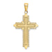 Million Charms 14K Yellow Gold Themed With Lace Border Relgious Cross Charm - Jewelry, Pendants & Charms, Themed Charms, Religious, Crosses, Passion Crosses - Purity: 14K|Finish: Polished|Length of Item: 36.4 mm|Charm/Element Length: 29.4 mm|Feature: Solid|Manufacturing Process: Casted| Jewelry Type: Pendants & Charms|Bail Width: 5 mm| Color: Yellow|Bail Length: 7 mm - Made in: United States