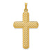 Million Charms 14K Yellow Gold Themed Polished, Textured Relgious Cross Pendant - Jewelry, Pendants & Charms, Themed Charms, Religious, Crosses, Latin Crosses - Purity: 14K|Finish: Polished|Length of Item: 38.55 mm|Charm/Element Length: 35.05 mm|Charm/Element Thickness: 1.3 mm|Charm/Element Width: 21.7 mm|Feature: Hollow|Manufacturing Process: Die Struck| Item Weight U/M: gm|Width of Item: 21.7 mm|Jewelry Type: Pendants & Charms|Texture: Textured|Profile Type: Flat Back|Bail Width: 2.11 mm| Color: Yellow|Bail Length: 5.6 mm - Made in: United States