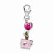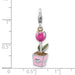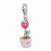 Million Charms 925 Sterling Silver Rhodium-Plated 3-D Pink Enameled Potted Tulip With Lobster Clasp Charm