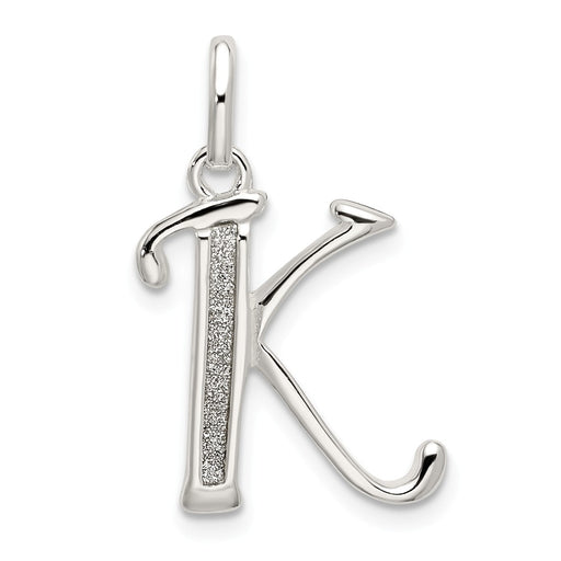Million Charms 925 Sterling Silver Polished Glitter Enamel Letter K Pendant
