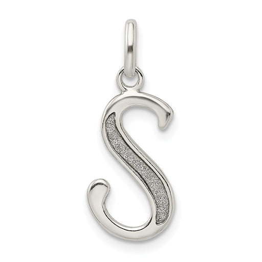 Million Charms 925 Sterling Silver Polished Glitter Enamel Letter S Pendant
