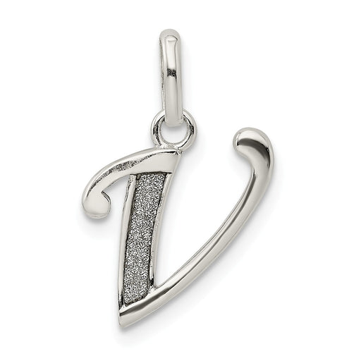 Million Charms 925 Sterling Silver Polished Glitter Enamel Letter V Pendant