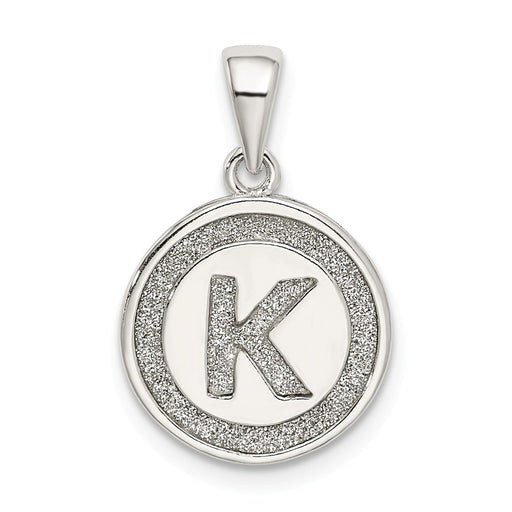 Million Charms 925 Sterling Silver Glitter Enamel Letter K Circle Pendant