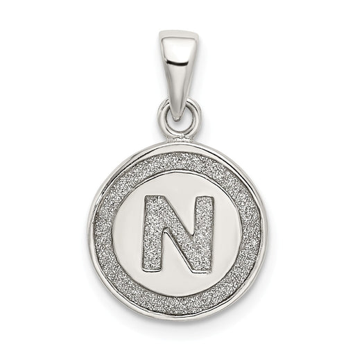 Million Charms 925 Sterling Silver Glitter Enamel Letter N Circle Pendant