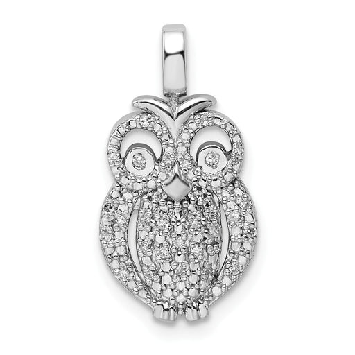 Million Charms 925 Sterling Silver Rhodium-plated 0.2Ct. Blk & Wht Dia. Reversible Owl Pendant
