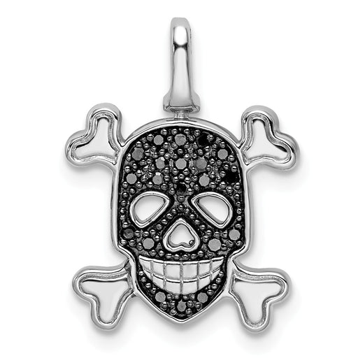 Million Charms 925 Sterling Silver Rhodium-plated 0.2Ct. Blk & Wht Dia. Reversible Skull Pendant