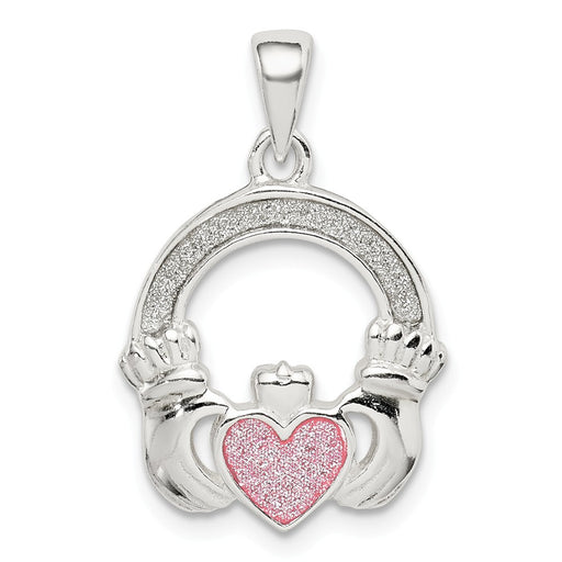 Million Charms 925 Sterling Silver Glitter Infused Claddagh Pendant