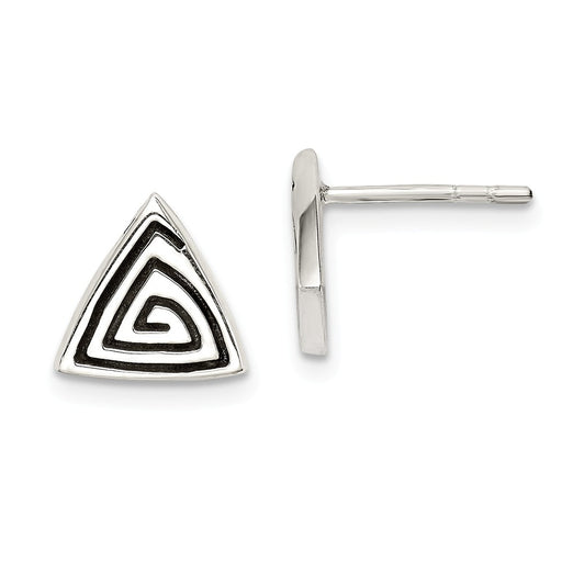 Stella Silver 925 Sterling Silver Polished & Textured Triangle Post Earrings, 9mm x 10mm
