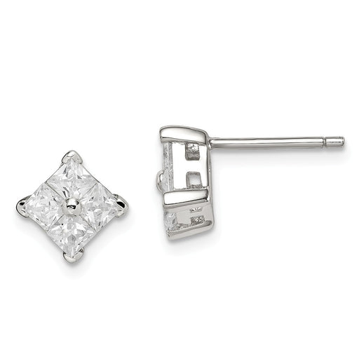 Stella Silver 925 Sterling Silver Cubic Zirconia ( CZ ) Square Post Earrings, 11mm x 11mm