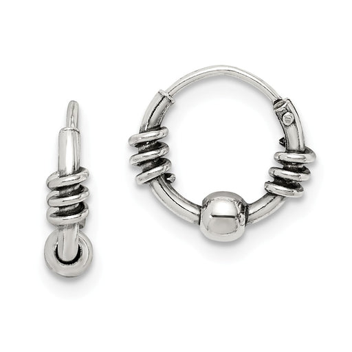 925 Sterling Silver Antiqued Beaded Hoop Earrings, 13.92mm x 13.71mm