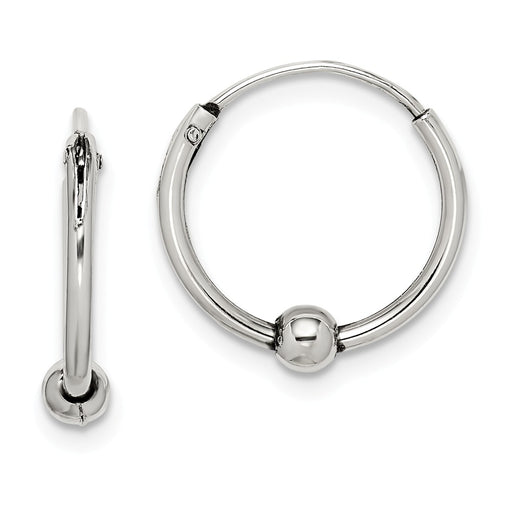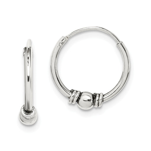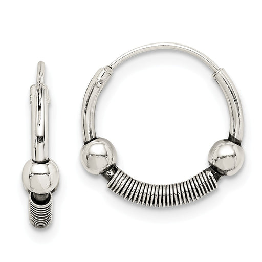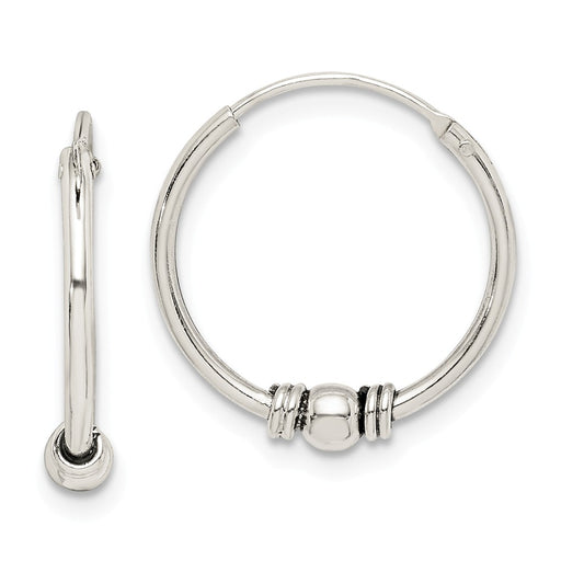 925 Sterling Silver Antiqued Beaded Endless Hoop Earrings, 14.7mm x 14.2mm