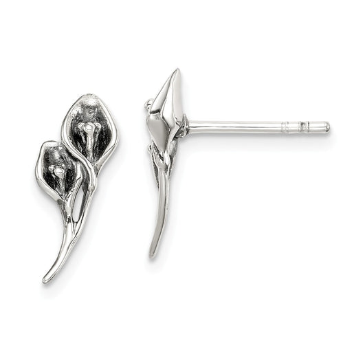 925 Sterling Silver Antiqued Calla Lily Post Earrings, 15.35mm x 5.35mm