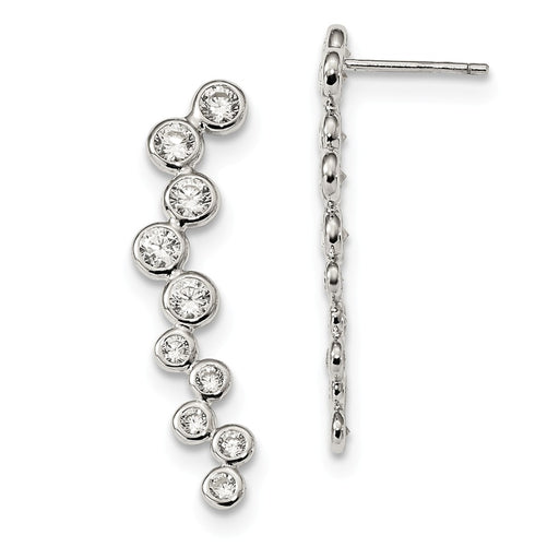 925 Sterling Silver Bezel Cubic Zirconia ( CZ ) Ear Climber Post Earrings, 33mm x 12mm