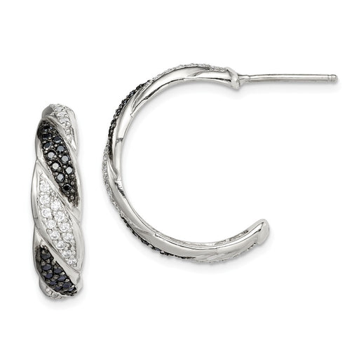 925 Sterling Silver Black & White Cubic Zirconia ( CZ ) J Hoop Stud Earrings,