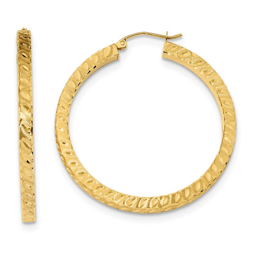 Million Charms 14k Yellow Gold Satin Diamond-cut Twist Hoop Earrings, 20.68mm x 21.42mm