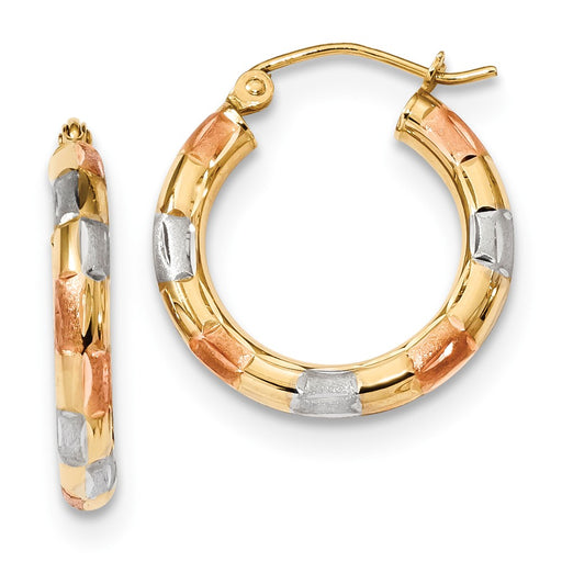 Million Charms 14k Yellow Gold with White & Rose Rhodium Polished, Satin & Diamond-Cut Hoop Earrings, 21.35mm x 19.55mm