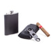 Product Description: Occasion Gallery Black Color Three Piece Black Leather Gift Set. Includes 8 oz. Flask and Telescoping Cigar Case with Double Guillotine Cutter. 3.75 L x 0.85 W x 6 H inches. Three Piece Black Leather Gift Set. Includes 8 oz. Flask and Telescoping Cigar Case with Double Guillotine Cutter. Product Features: Three piece gift set. 8 oz. Leather wrap flask. Captive flask cap. Holds up to a 3 cigars. Double guillotine cigar cutter. Color: Black