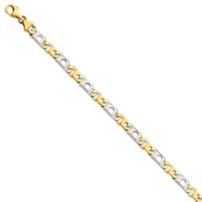 Million Charms 14K Two-tone 6mm Hand-polished Fancy Link Bracelet, Chain Length: 8 inches