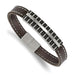 Chisel Brand Jewelry, Stainless Steel Polished Black IP Lasercut Brown Leather 8.25in Bracelet