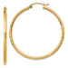 Model No. MCQGTC213 - Million Charms 14k Yellow Gold Satin & Diamond-cut 2mm Round Tube Hoop Earrings, 40mm x 2mm Specifications: Material: Primary - Purity:14K|Length of Item:40 mm|Material: Primary:Gold|Thickness:2 mm|Product Type:Jewelry|Jewelry Type:Earrings|Sold By Unit:Pair|Gender:Women's|Material: Primary - Color:Yellow|Earring Closure:Wire & Clutch|Earring Type:Hoop Made In: PERU