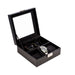 Occasion Gallery Black Color Black Leather Watch and Accessory Case with Glass Top and Locking Clasp. 7.75 L x 7.75 W x 3.25 H in.